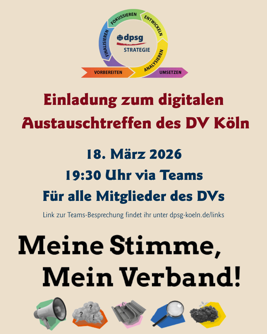 Am 18.03. um 19:30 Uhr laden wir alle Interessierten zu einem digitalen Austausch per Teams ein. Wir stellen euch den aktuellen Stand der Strategie vor und kommen mit euch ins Gespräch. Die Rückmeldefrist ist knapp, daher freuen wir uns besonders über jede Teilnahme. Auf der kommenden Bundesversammlung soll die Strategie für die nächsten fünf Jahre beschlossen werden. Der Bundesvorstand hat sich nach intensiver Beratung für die Option „Meine Stimme, mein Verband“ entschieden. Damit diese Strategie alle Ebenen des Verbandes berücksichtigt, möchten wir eure Rückmeldungen einholen und ins weitere Verfahren einfließen lassen.
